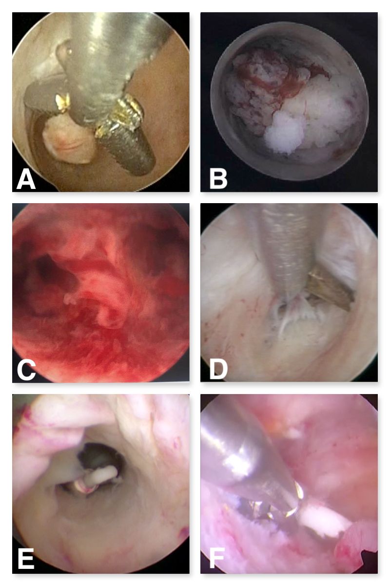 Mechanical tissue extraction devices are also available, whether operated manually by hand or powered. Some of these are paired with a tabletop suction device or fluid management system. There are electrosurgical instruments available for the office as well, but the authors prefer to avoid electrosurgery in the office to reduce the risk of complications, such as injury to surrounding structures and perforation.